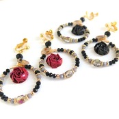 ダークローズが主役のフープ耳飾り(赤)
