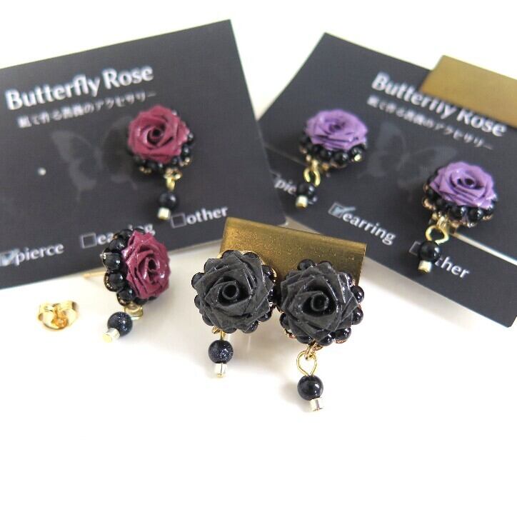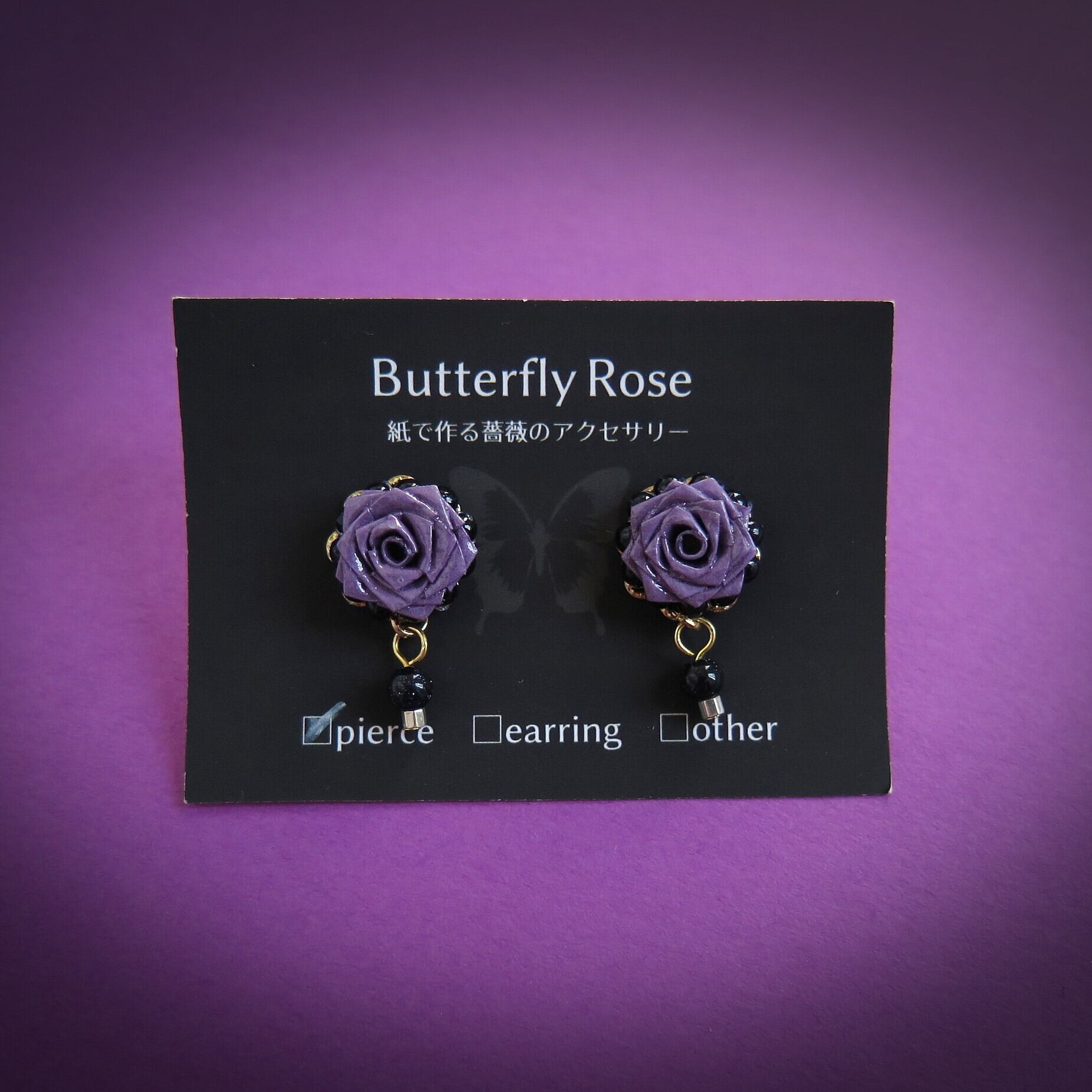 薔薇の甘さとエレガントさをあわせもつ耳飾り(パープル)