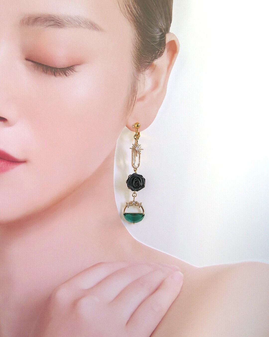 一点もの!吸い込まれそうなグリーンが美しいダークカラーのピアス・イヤリング