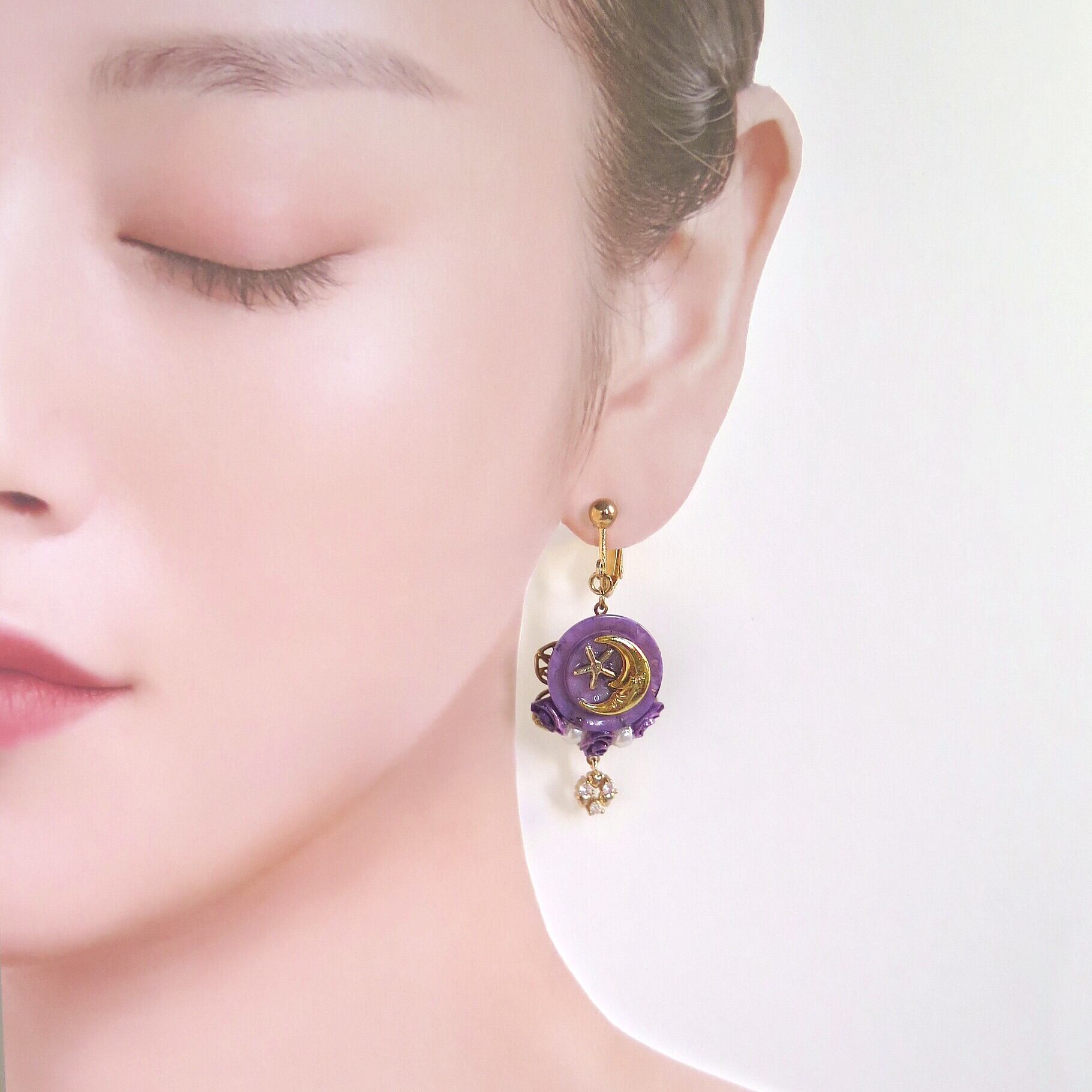 一点もの!闇夜に幻想的に輝くディープパープルのボタンピアス・イヤリング