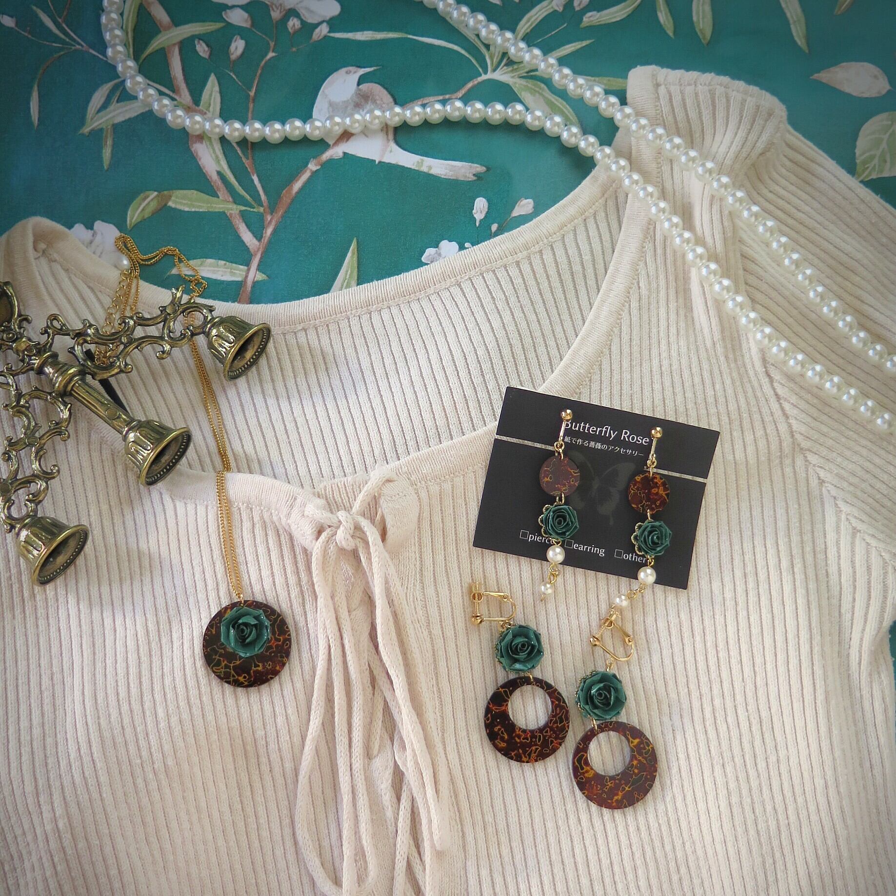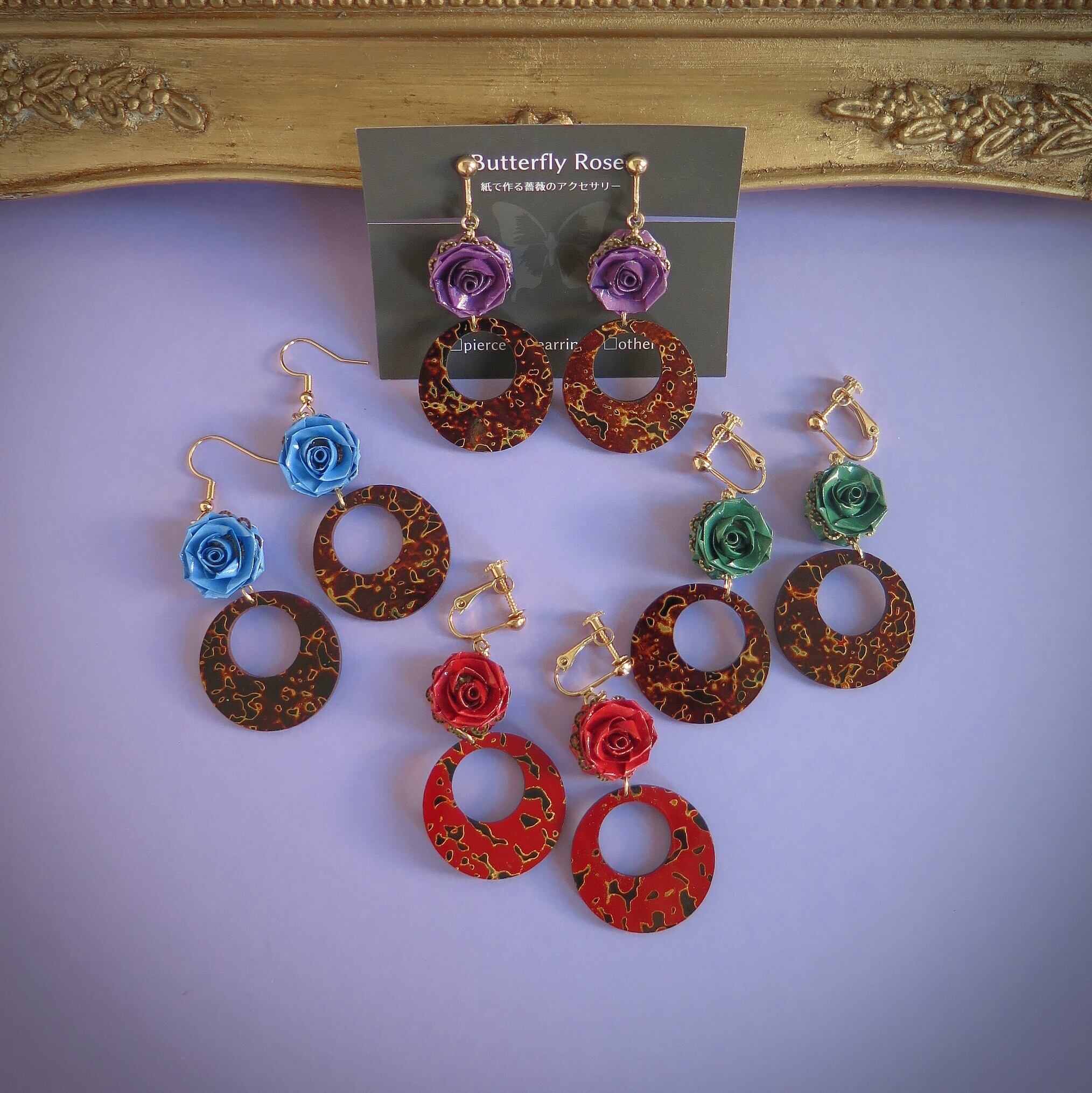 ピアスはサージカルステンレス(フック又はキャッチ付き)、イヤリングはニッケルフリーと、どちらもアレルギー対応の金具を使用しています。